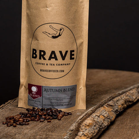 A Blend of Colombia and French Roast, a little light, a little dark, all flavor. We call it Autumn blend, because it hits you like a brisk Autumn day, a little zip at the front, but all mellow once you fall in.